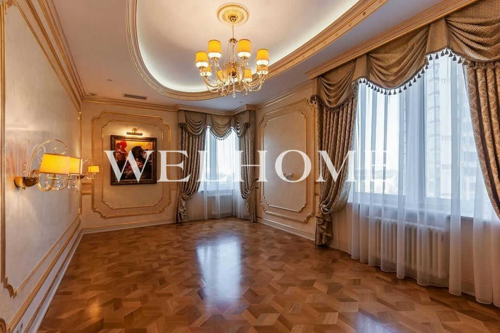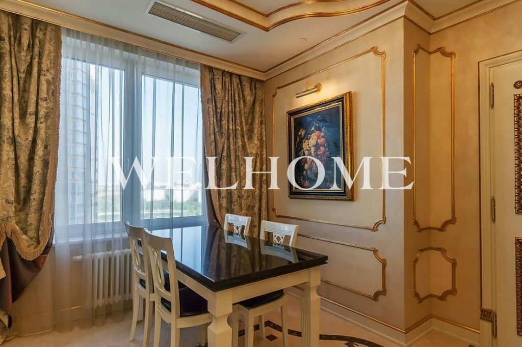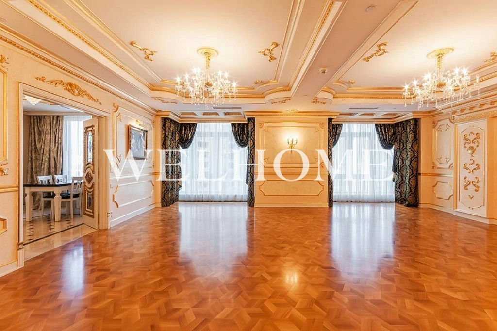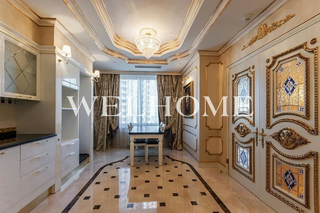 ID объекта на сайте Welhome: G-2150. На продажу выставлена четырехкомнатная квартира с дизайнерской отделкой в стиле барокко. Спланировано: большая гостиная, кухня-столовая, спальня, детская, кабинет, три санузла. В интерьере использованы декоративные отделочные материалы от Versace, отделка выполнена высококачественными материалами, среди которых мрамор, паркет из твердых пород дерева и натуральный камень. В гостиной установлены витражные двери. Встроенная кухня оснащена всей необходимой бытовой техникой. Санузлы оборудованы качественной сантехникой от ведущих европейских производителей, в ванной комнате установлена джакузи. Окна ориентированы на две стороны, открывается панорамный вид на город.Основные характеристики района близость и удобство проезда к центру города, большая благоустроенная внутренняя территория, развитая инфраструктура и прекрасная экология. Мосфильмовская улица окружена широким зеленым кольцом: парком Воробьевы Горы, садами Университета, долинами рек Раменка и Сетунь.7 корпусов комплекса возведены на едином 5-уровневом стилобате. Презентабельная входная группа, панорамные окна, переменная этажность, функциональные планировки, эксклюзивная отделка с применением дорогостоящих материалов.
